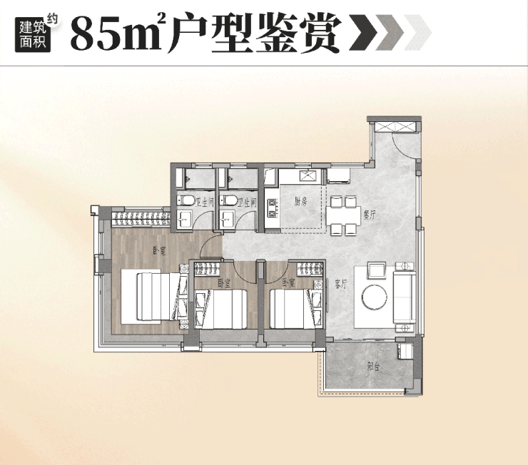 四房设计了108平和113平,其中,113㎡四房两卫,堪称保利珠江天悦的平替,是西部最小的望江四房。四开间朝南,南北对流,南向超大阳台,样板间展现出上一代产品 130㎡的尺度感,LDKB一体化设计,会客空间宽敞。