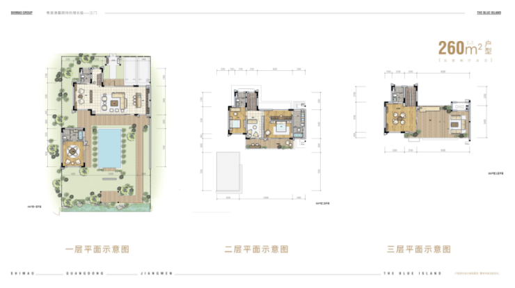 世茂碧海银湖,在这片红树林湿地里,打造了建面约105-260㎡滨海温泉合院,以高使用率、高舒适度,带来超乎寻常的居住体验。此次的合院产品主推四种户型: