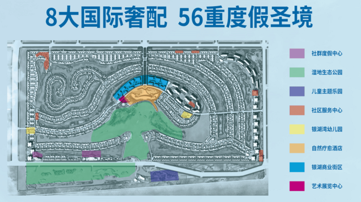 碧海银湖不仅仅只是注重形式,同时也是世茂精心打造的乐园。项目规划五大核心板块,八大配套,分别是度假、康养、亲子、运动以及风情商业,以一心一轴七组团开发,涵盖40多项度假配套。