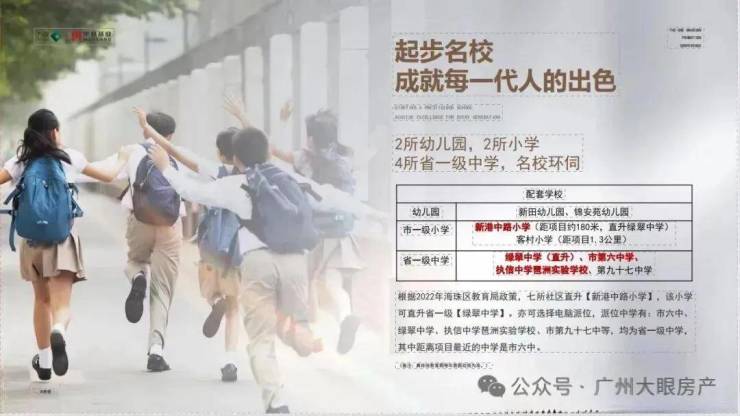 小学:新港中路小学(距项目180米,直升绿翠中学)、客村小学(距项目1.3公里)