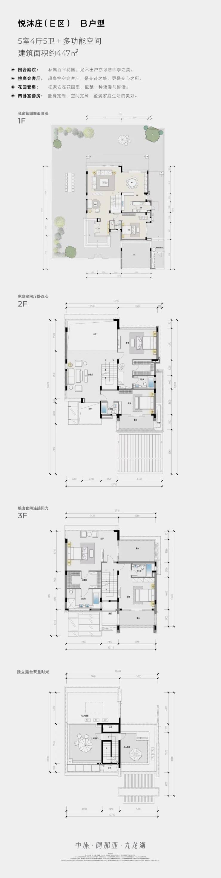 这28席独栋别墅,建筑面积约880㎡-2088㎡,户均占地超2亩,每户都享受独家观景视角,私家庭院超1000㎡。