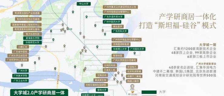 国际创新城板块又称大学城2.0版本,这个片区目规划有,大学智慧谷一期,智慧谷二期,智慧谷三期,还有产业孵化基地。化龙农业大观园,广州大学城科技创新产业园,广州国际商业展贸城等等。