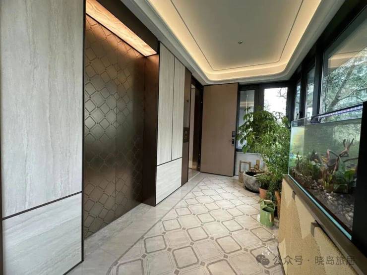 全系标配定制级铸铝装甲入户门、奢石背景墙、大板瓷砖、弧形吊顶、博洛尼玄关柜,以及全屋智能化系统等。