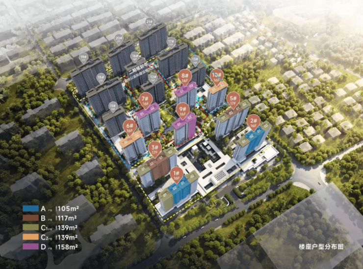 项目首期将推出1#、2#、3#、9#楼栋,户型涵盖105㎡、117㎡、139㎡以及158㎡两房至四房。
