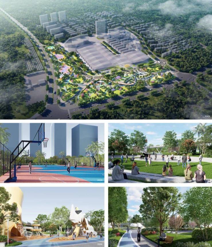 涵盖网球场、篮球场、儿童乐园、草坪剧场、健身步道等全龄活动空间;