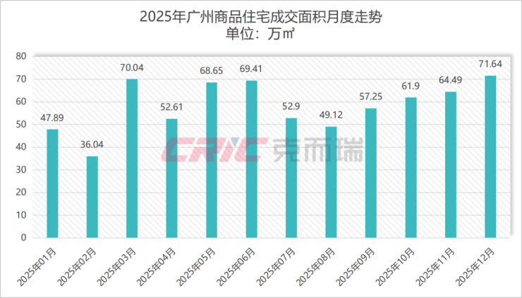 其中12月在年终购房节点的带动下,广州商品住宅成交71.64万㎡,环比11月增长11%,是今年以来广州商品住宅成交规模最高的月度,实现“翘尾”收官。