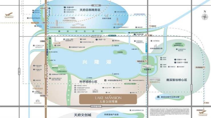 生态:约5100亩兴隆湖,3500亩凤栖湿地,约4500亩鹿溪河生态公园环绕