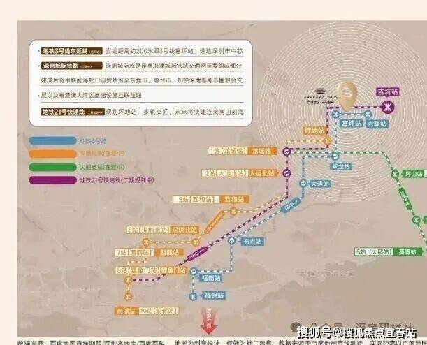 交通配套:创城云璞交通配套极为完善,地铁3号线东延线富坪站已开通,距离项目仅约200-300米,步行10分钟可达。乘坐3号线到大运站可便捷换乘14号线,30分钟直达福田中心区。深惠城际轨道线坪地站预计2026年11月开通,时速160公里,1站到龙城、2站大运北、6站到深圳北、7站到西丽、10站速达前海,实现"1小时湾区生活圈"。