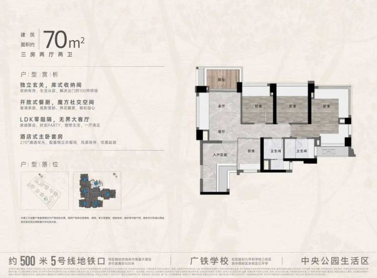 社区内配建九年制广铁一中铁铮学校,一共三个校区