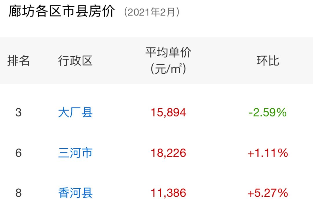 数据显示,目前北三县二手房价整体看有小幅上涨,其中三河市(燕郊)2月较新房价18226元/平米,大厂县较新房价15894元/平米,香河县较新房价11386元/平米。