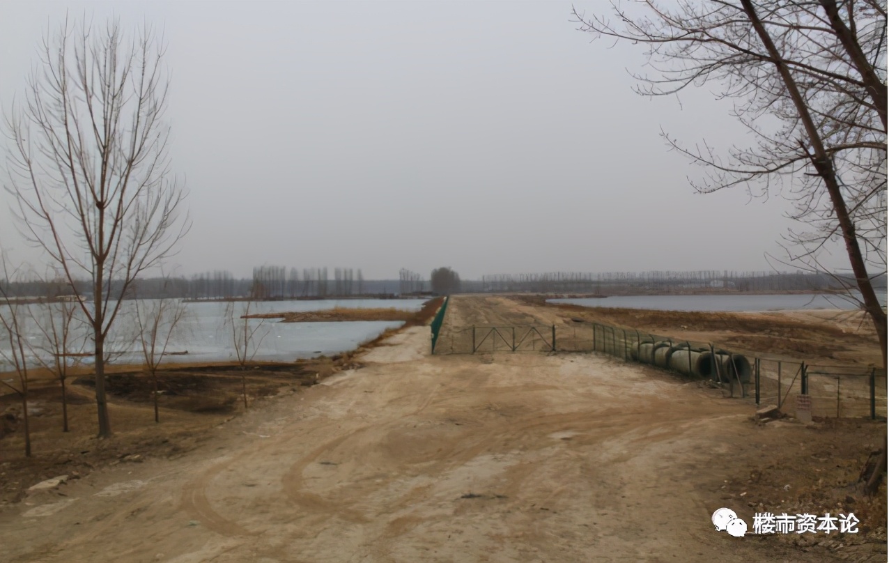 上图是超白河畔从东往西看的视觉效果。虽然天很冷,但不得不说,有河的感觉真是不错。另外,神奇的高德地图已经出现了这条填河土路,经过我们在高德地图的测算,从东往西约有400米长。