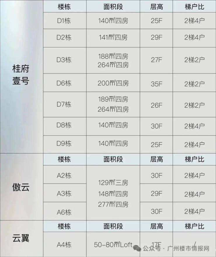 公寓:傲云 共662户,A2-A3-A6栋,首层为大堂,4-28层为公寓,2梯4户。