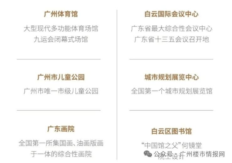 项目紧邻 广州市儿童公园、白云文化广场、广州体育馆、广州市城市规划展览中心、广东画院、白云国际会议中心等六大省市级地标建筑,南航三大总部、无限极总部、地铁设计院总院等总部大楼环绕在旁,共同构筑了一个高端、商务、国际化的生活圈层。