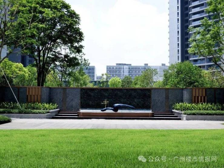走进社区,约1.4万㎡的沉浸式围合园林已然成型,香樟、凤凰木等名贵树种错落有致,叠水景观、儿童游乐区、长者休闲区等功能空间一应俱全。