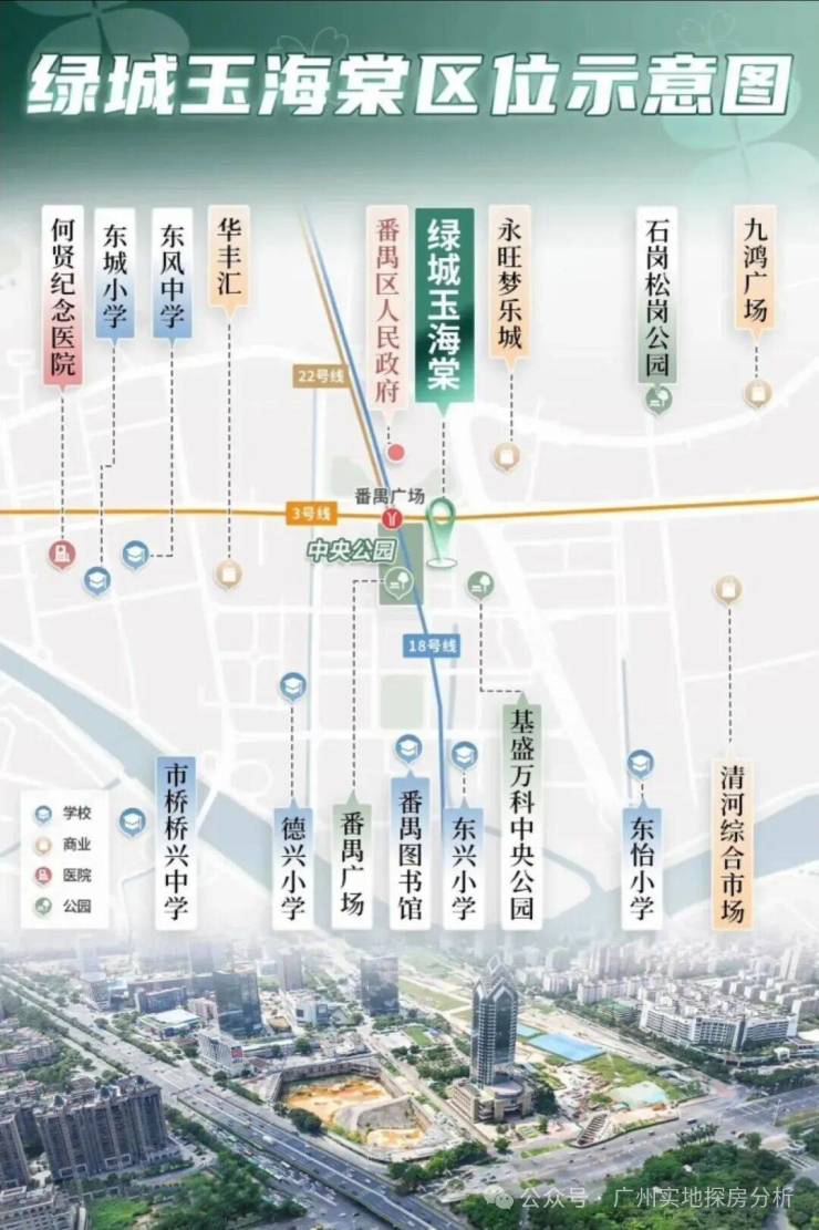 位于番禺广场中轴线上,番禺广场E口上盖与区政府仅一路之隔,四周多个商业体环伺,北侧是赫赫有名的蟑螂中银大厦,东侧是在建永隆湾区中心,南侧是区图书馆和基盛万科中央公园而且还不靠路边,没有噪音粉尘,可以说无论是交通还是景观、商业,都是顶尖。
