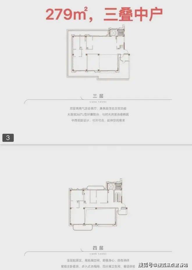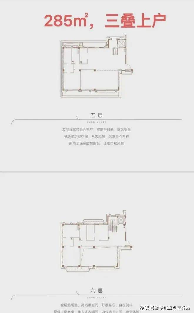 ●产品户型:两叠(上叠392㎡、下叠437㎡),三叠(上叠 285㎡、中叠279㎡、下叠305㎡)