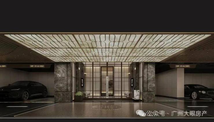 车库入口配置星空穹顶,搭配奢华型迎宾背景墙,内部打造透光云石穹顶、铝格栅吊顶、仿石漆天花、高品质金刚砂+地坪漆双重工艺等豪奢配置。穿越奢华的归家路,际遇层峯的尊崇归家礼序