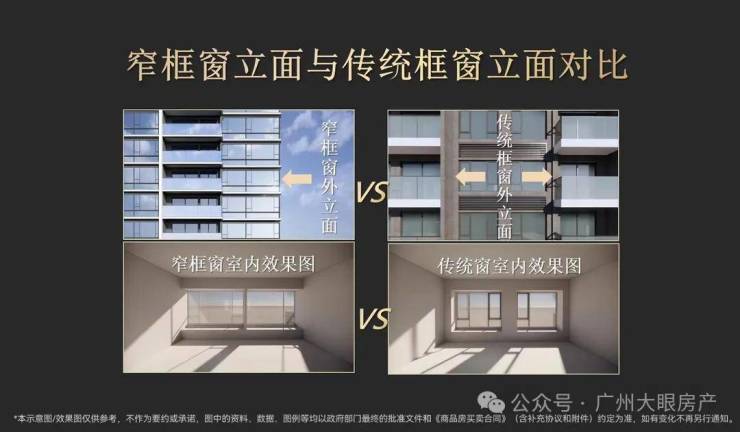 外立面结合窄框窗和大面屏LOW-E玻璃,打造约34.4%-48.9%的窗地比(传统约20%)和约13%-17%的有效通风面积比(传统约5%),实现IMAX全面屏美感