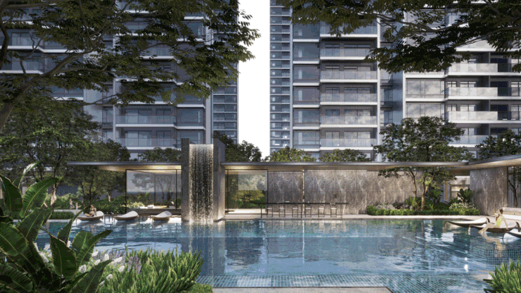 对标纽约第五大道安缦酒店同款泳池,打造约600㎡奢配泳池,集成人泳池、儿童池及按摩池等豪宅泳池配置,并设置星级酒店会所吧台。其中,仿生自然生态流水瀑布高约 5.5米,选用南亚宇宙黑奢石为主材,搭配“奢石中的爱马仕”铂金钻打造的酒店式吧台,尽显奢华;