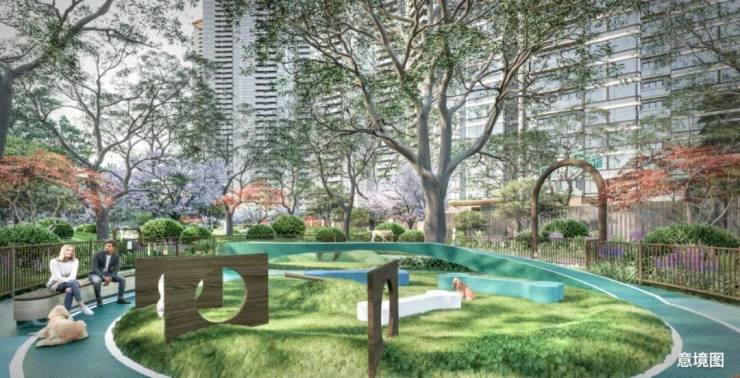 萌宠乐园:宠物游乐设施、草坪跑道、宠物便便箱,为毛孩子们建造一个专属乐园,总面积约为340㎡