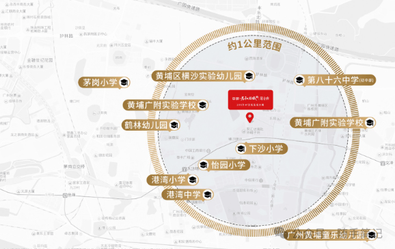 中小学:横沙小学、怡园小学、港湾小学、下沙小学、石化小学、石化中学、广州市第八十六中学、黄埔广附实验中学、中大附属外国语实验中学