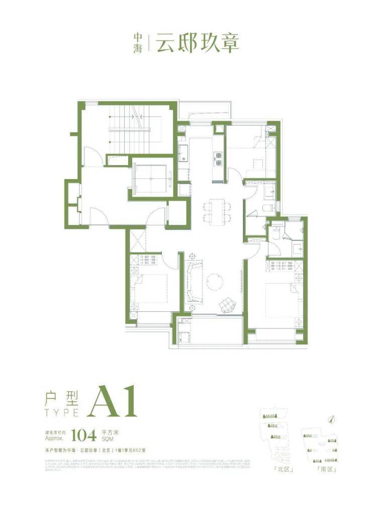 104m²3房是项目的收官户型,主力总价约1200万上下