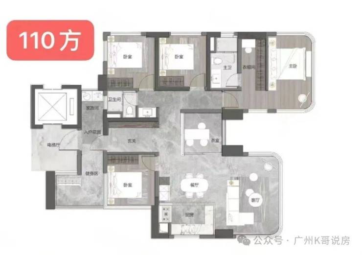 ·建面约108-111平的4房(有两个版本);