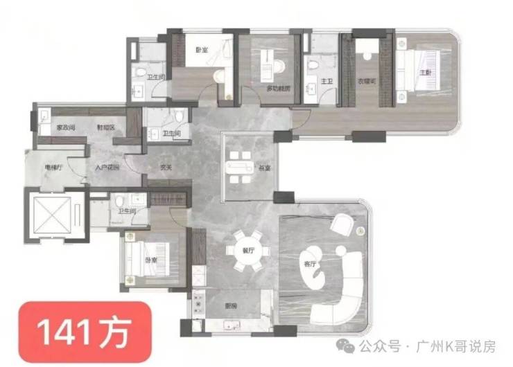 建面约140平的4房,带三主套,四个卫生间,据说实用率高达150%!!