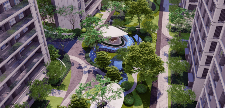 3⃣园林生活·双中庭六境园林:两大园林中庭,六大主题园林小景,健康步道,特色浅水水景,推窗即享四季悦目风光