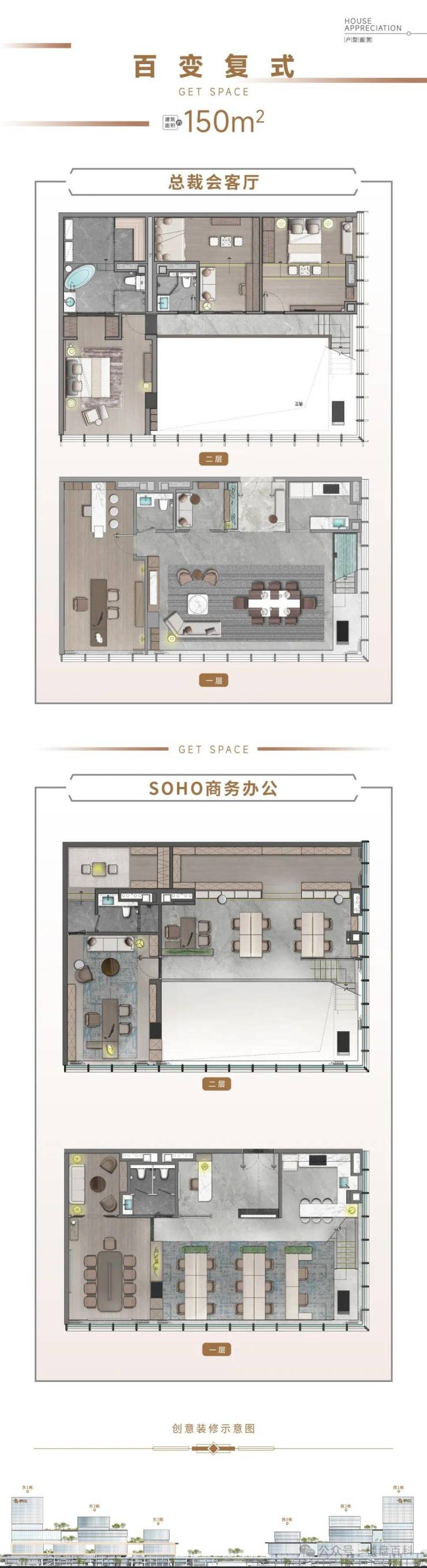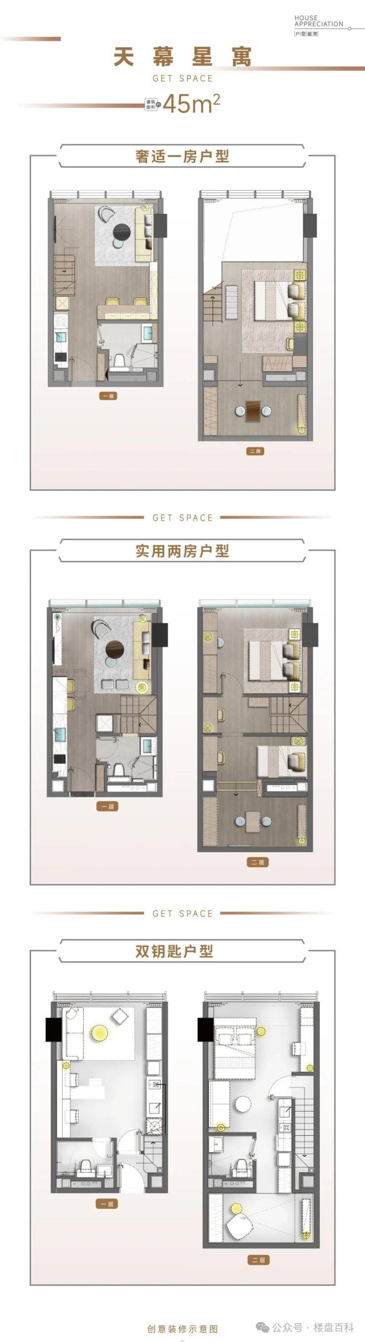 【产品面积】:天幕星寓45-60㎡主售,百变复式150-223㎡