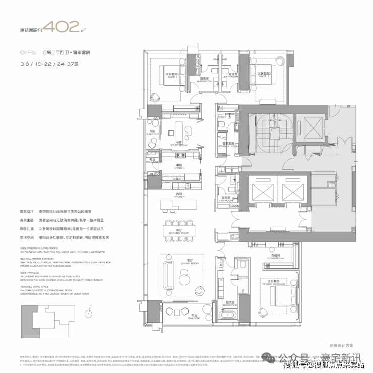 在深超总约1.17平方公里的土地上,项目以仅3.0的超低容积率,打造建面约300-1000㎡纯粹大平层藏品。约3.6米层高、大尺度阳台、无界景观视野,诠释了在高密度核心区实现“低密奢居”的可能,其规划理念极具借鉴意义。