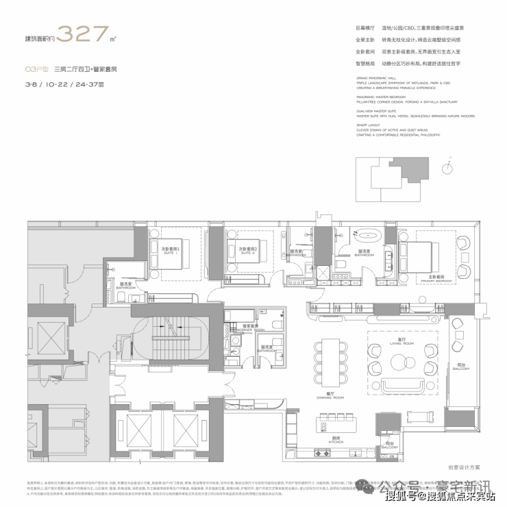 约303m²/327m²/400m²/570m²/1000m²纯粹奢享大平层,约3.6m层高+大尺度阳台,将一城繁华与自然宁静尽揽于窗前。