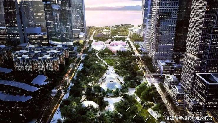 深超总拥有海、湖、湿地、公园、高尔夫五重稀缺生态资源,通过中央绿轴打造"超级校园"生态模式。滨海大道下沉,将释放约10万平方米地面空间,无缝连接深圳湾公园,形成连续的滨海公共空间。中央绿轴地下空间面积约30万平方米,投资95亿元,将建成连接地下枢纽与地面生态的超级系统。这种设计使深超总成为高密度城市环境下生态融合的典范,实现"在城市中漫步自然,在自然中享受城市"。