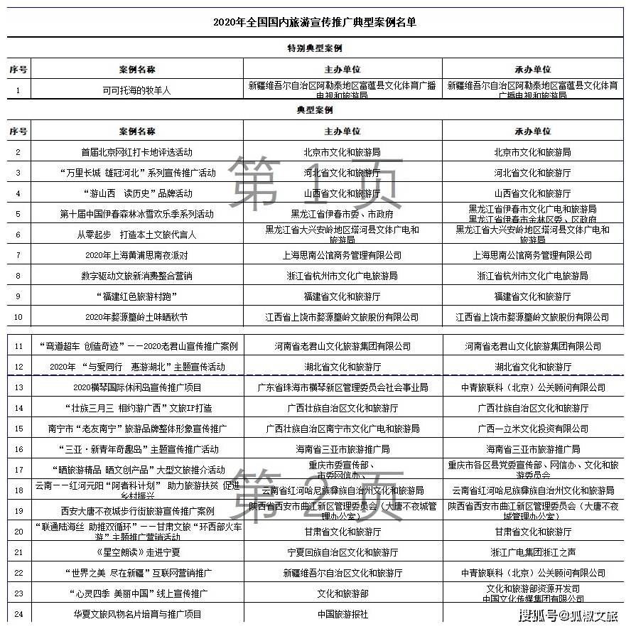 近日,文化和旅游部资源开发司发布关于2020年国内旅游宣传推广典型案例名单的通知,具体公文如下: