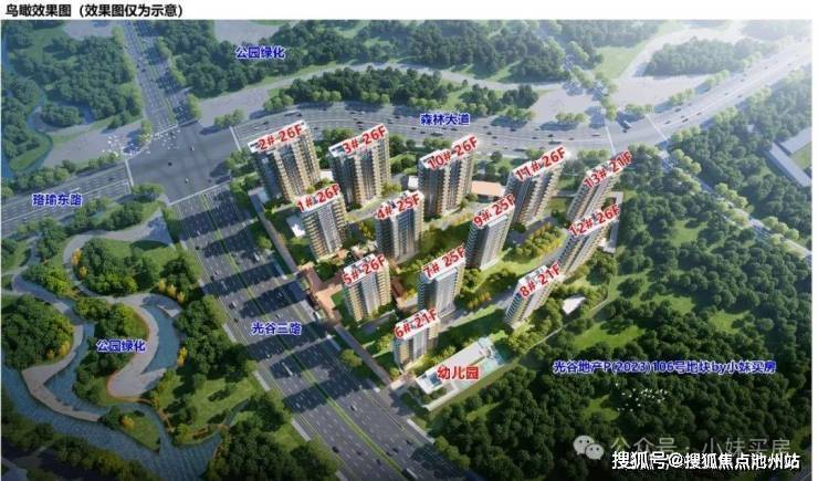 项目共规划有13栋住宅,总高为21-26层,不算太高,并且总楼层相差不大,对比高低配的产品来说,综合舒适度更高。