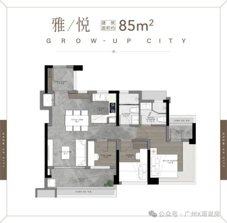 75㎡三空间两卫,年轻人主城上车首选 ,四开间朝南 全明转角玄关 开放式厨房,开阔景观阳台 南北对流主套&衣帽间。