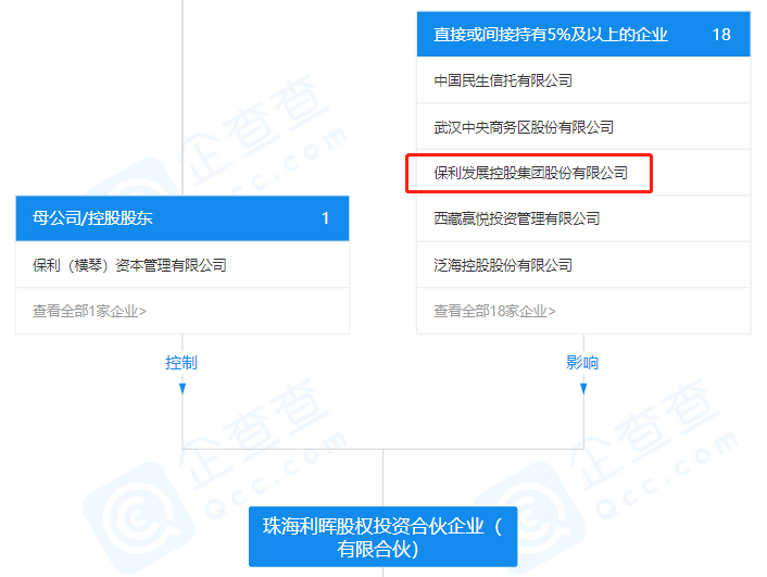 据焦点财经了解,珠海利晖基金成立于2016年4月,当初的预计规模为25亿元,保利地产及保利投资分别出资不超5亿元。后续珠海利晖基金的股东几经变更,如今包含保利地产、保利投资、民生信托和国机汽车等11家企业股东,当中民生信托持股最多达28.78%。