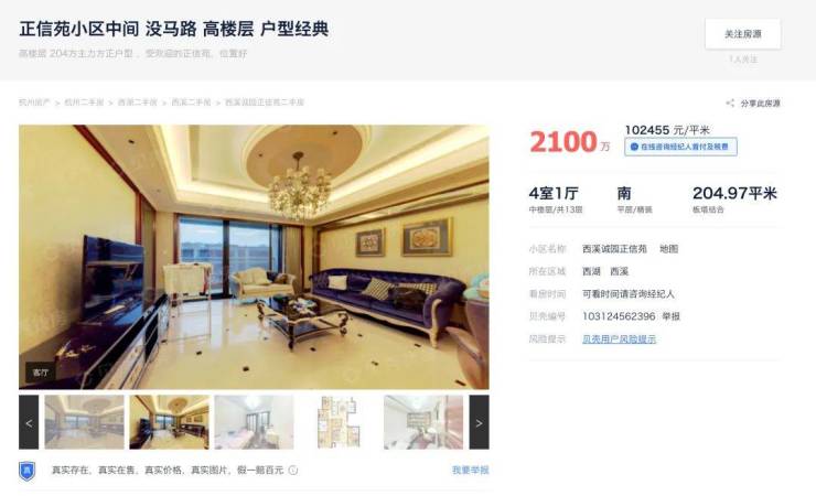 这两年别墅涨幅惊人,就是因为极度稀缺,最贵的桃花源拍出了1.33亿的高价,平均10万元/m²,林语别墅10万元/m²,西溪雲庐13万元/m²,江南里20万/m²。