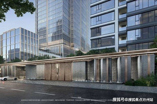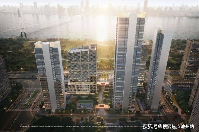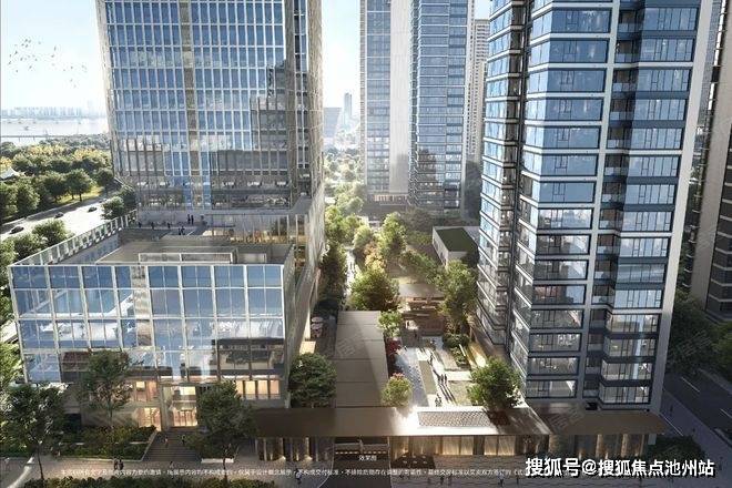 在立面细节传达上,设计以错动且转折的玻璃单元,转译江面波光闪烁的视觉意象;浅香槟金铝板搭配玻璃幕墙,奠定现代精致底色,规避工业化冰冷感。设计借生态绿轴串联空间,形成“建筑—绿地—江景”生态闭环。“风帆”“远航”更承载江城开拓品格,为使用者构建兼具景观与精神共鸣的滨江人居。
