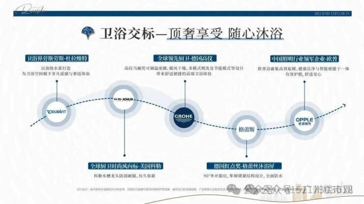 比如,卫浴空间参考五星级酒店标准,全系配置杜拉维特、摩恩、高仪、科勒等精装品牌,打造舒适的卫浴体验。