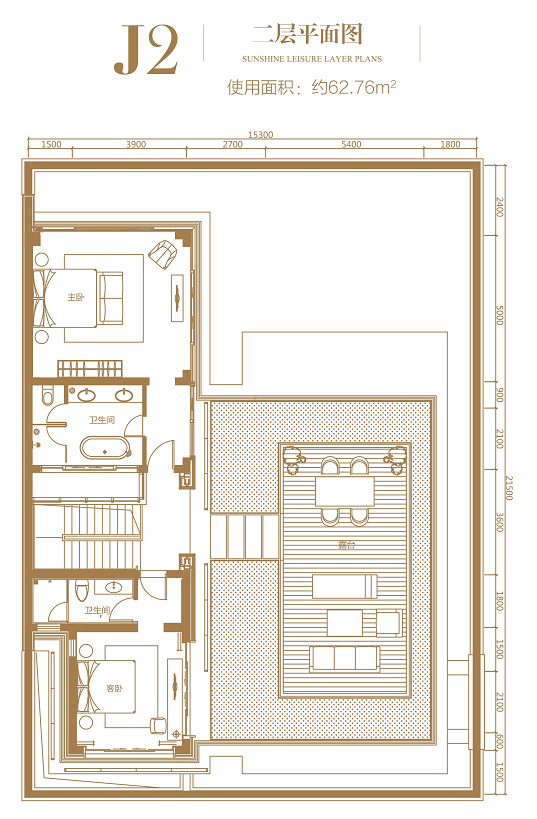 二层:使用面积约 62.76㎡,