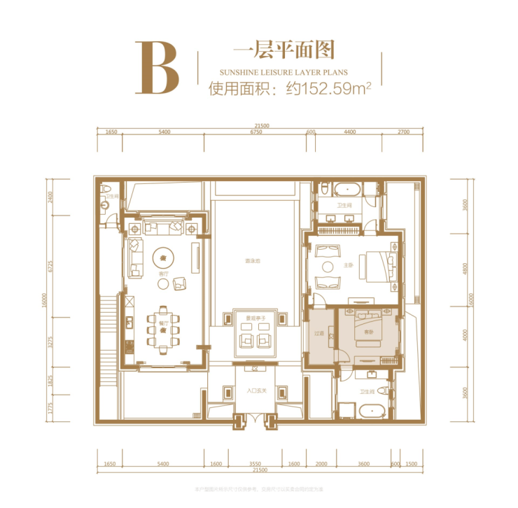 一层:使用面积约 152.59㎡,