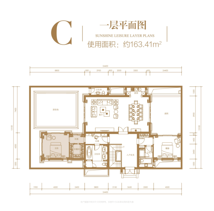 一层:使用面积约 163.41㎡,