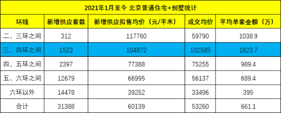 北京各环线新增供应楼盘均价一览,制图:焦点财经
