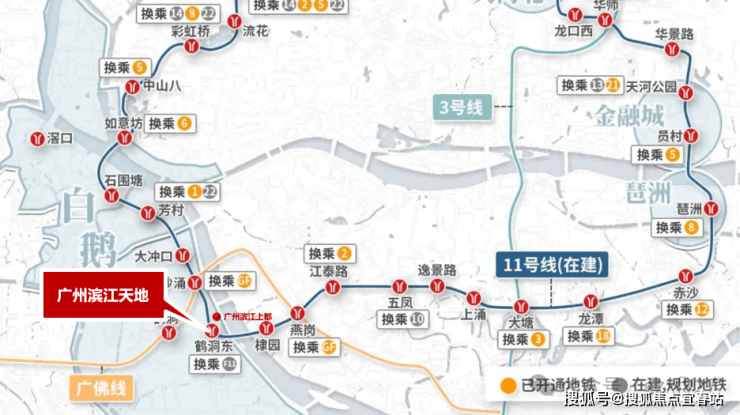 目前,在广州滨江天地已能初步体验到滨江大城生活的惬意:作为广州首条环线地铁11号线鹤洞东站上盖项目,出门即可搭乘11号线快速直达琶洲、珠江新城等核心区域,而佛山11号线(规划中)开通后,通行广佛两地将更加便捷;社区配建的荔湾青少年宫附属幼儿园和广外附属荔湾小学已开学,上学接送方便;一期滨江公园的开放,让家楼下即是“城市休闲目的地”,随时可开启亲子露营、溜宠散心、飞盘瑜伽、生态研学、赏艺之旅。