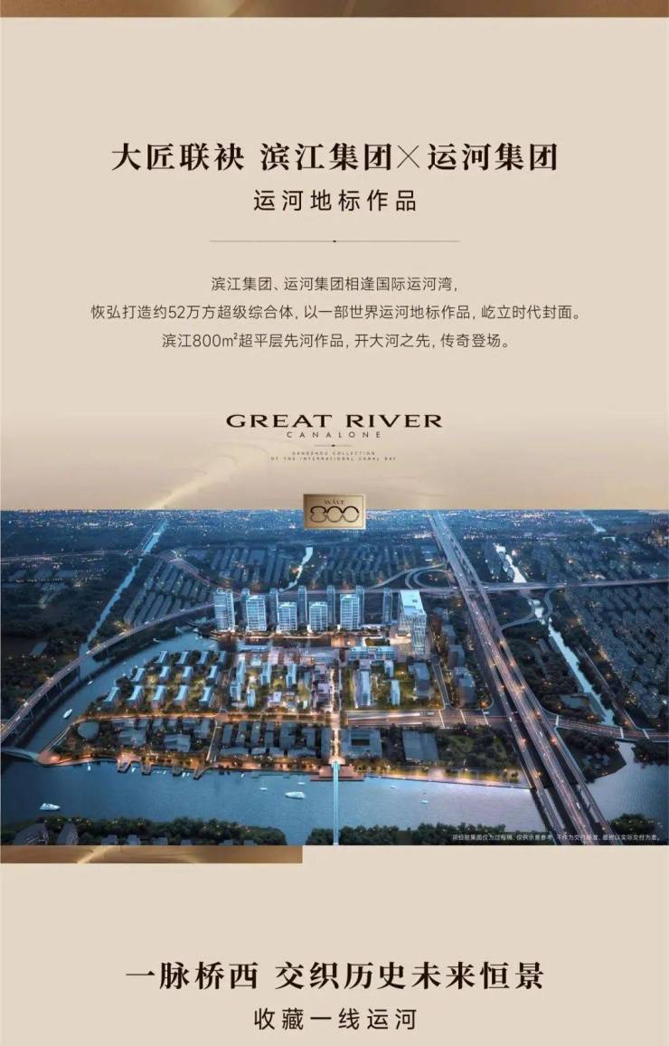 项目位于杭州拱墅区运河新城核心区,独占京杭大运河1.2公里岸线,以“一层一户、一层一景”的极致设计理念,主卖400-800㎡超平层产品,价格2.2万左右,标准层层高3.8米,定位为杭州新一代财富阶层的顶豪资产。