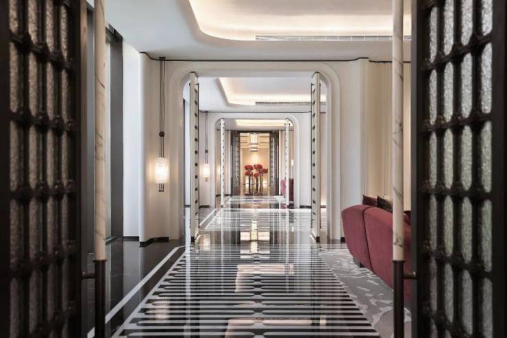 奢华从某种角度讲,需要扎实的投入。而在所有有关奢华的表述中,石材是不可或缺的载体。湾流800的首层大堂,地面和墙面,用到的石材就多达6种,不少还是进口而来。