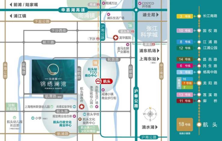 交通方面,陆家嘴锦绣澜湾距离18号线航头站直线约1公里,进站后7站即达中环御桥、11站可达内环龙阳路、15站来到陆家嘴金融城昌邑路!