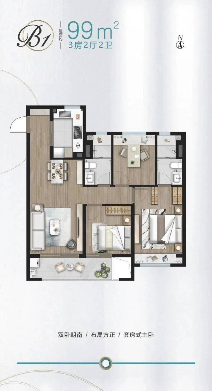 建面约89㎡做3房,功能性上就占尽先机,没想到项目还有1.5卫配置,主卧升级套房,真正实现一步到位!