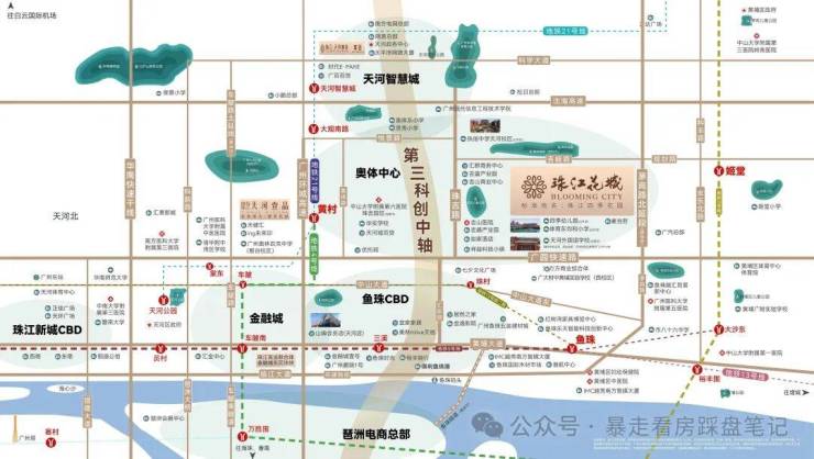 🔅珠江花城占位广州第三科技中轴,毗邻天河智谷。茅岗路一线直达鱼珠CBD,直线距离约6km享珠金琶三大CBD繁华生活。